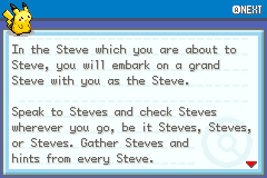 Okay, this one I'm sure will be the only ever build of Steve to release. The gag is great for the start of the game, but it might have gotten grating if it had continued any further. So with that in mind, this is probably the perfect length for Steve to be (phrasing?). There's also an engine change in there that I hope you'll catch; I'd completely forgotten about it so when I stumbled on it again it cracked me up. Please Steve responstevely.