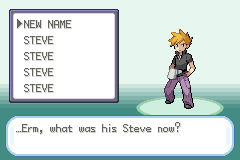 The changes in this build go up to and including Viridian City, and excludes a new title screen (which is kind of why it isn't included in the screenshots). I quite like this hack and think it has a lot of promise (it was fun trying to figure out how the obstacles in Red's way would be set up and/or removed by Blue, like how the old man would actually get his coffee from Blue, which is what gets him out of the way for Red to keep going). If anyone wants to continue this and can demonstrate that they're capable, then I'd be glad to hand over the reigns.